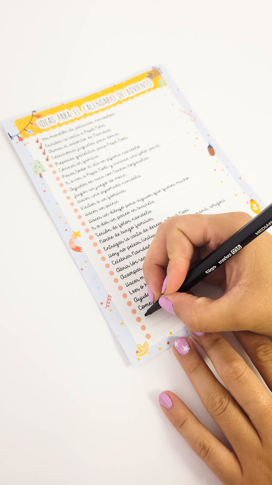 -Una lista de ideas de distintas actividades familiares que podes incluir en el calendario.