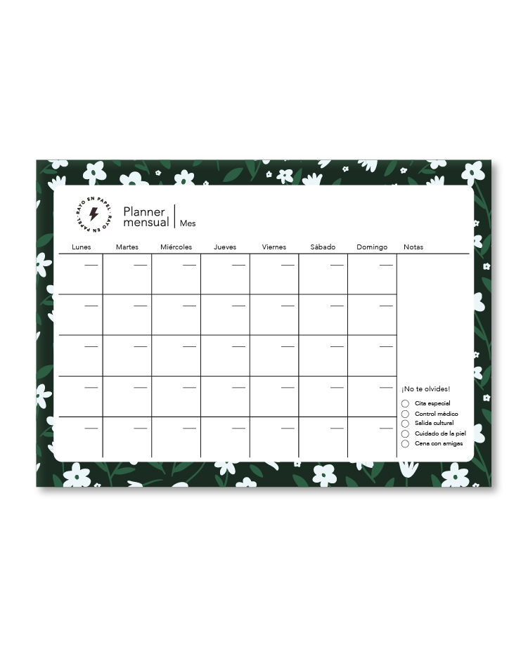Planner mensual A3 | Flores del bosque
