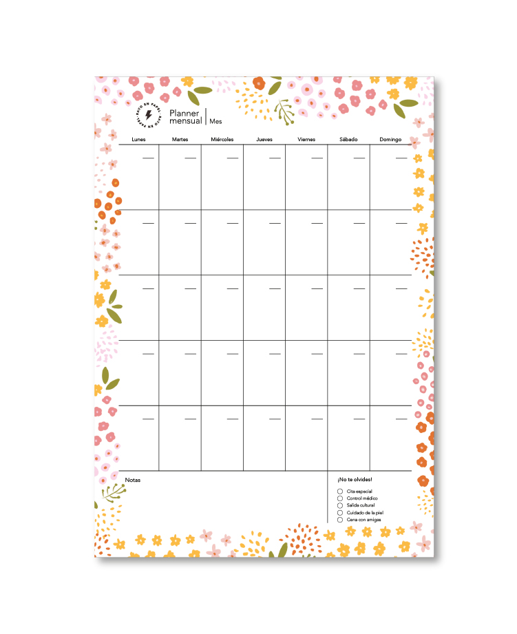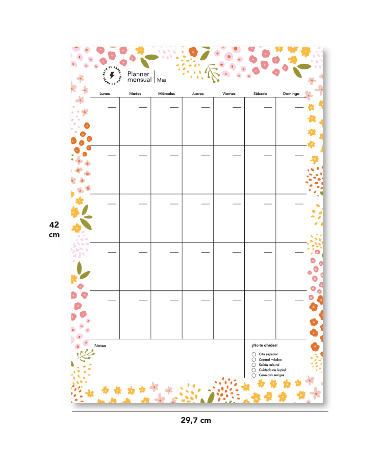 Planner mensual vertical A3 diseño Flores de primavera