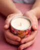 Vela en contenedo de lata, elaboradas artesanalmente con cera de soja.